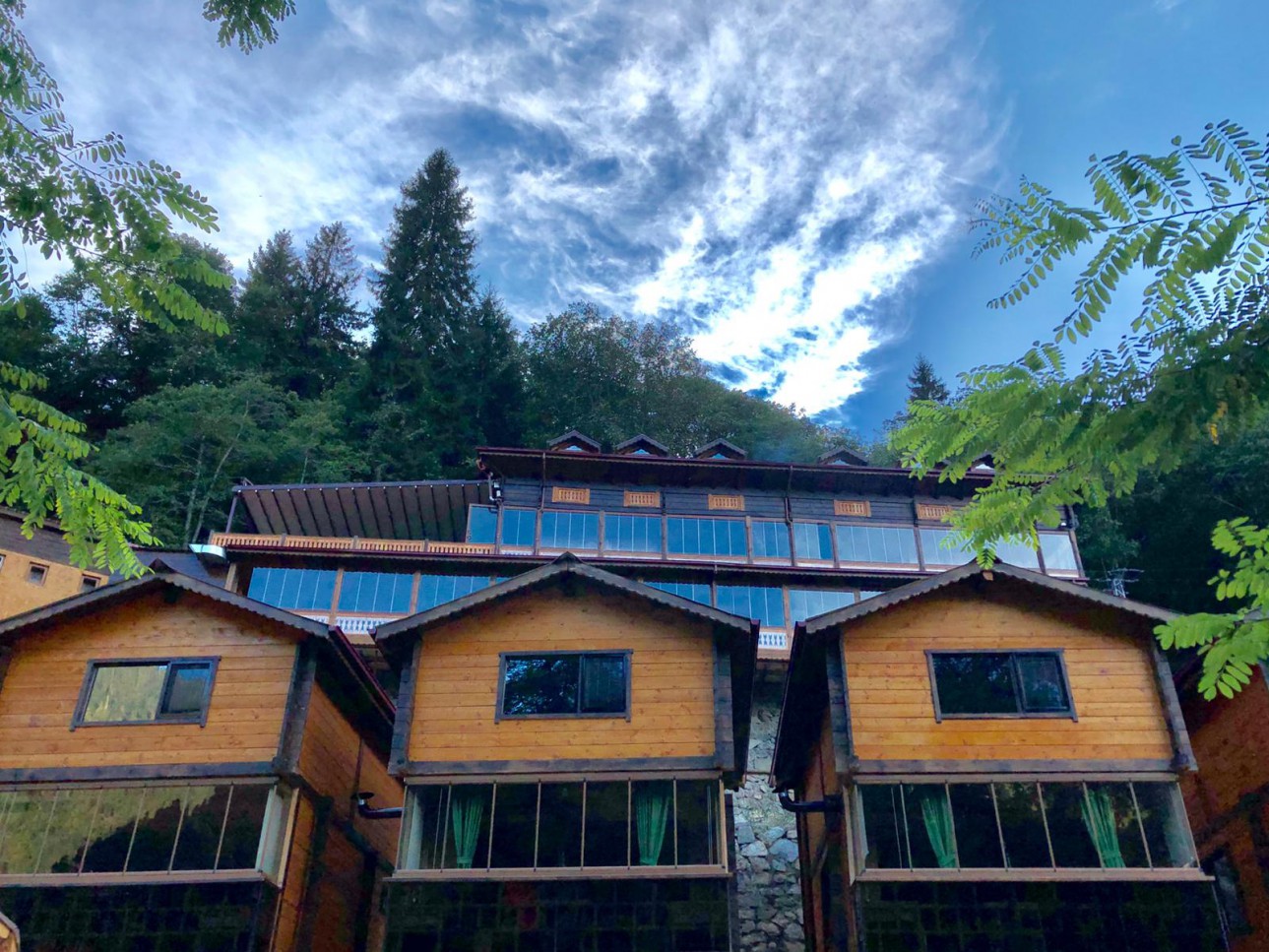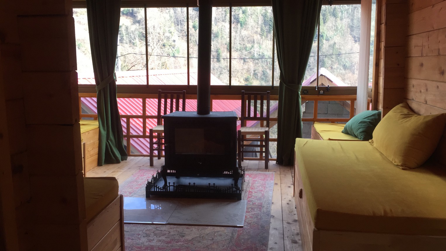Tamamı ahşap bungalovlarımız 2 katlı, üst katında 2 odası, bir odasında çift kişilik yatak diğer odasında 2 tekli yatak, alt katında tuvalet banyo, şömineli soba ve yöreye uygun dizayn edilmiş oturma alanı vardır. Bungalovlarımızın hepsinde televizyon, minibar ve saç kurutma makinası vardır. 4 kişiliktir isteğe göre alt katında yatak hazırlanabilir.